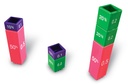 Die farbigen Steckkuben entsprechen in der Kubenhöhe ihrem Wert und können zusammengesteckt mit anderen Kubentümen verglichen werden.
