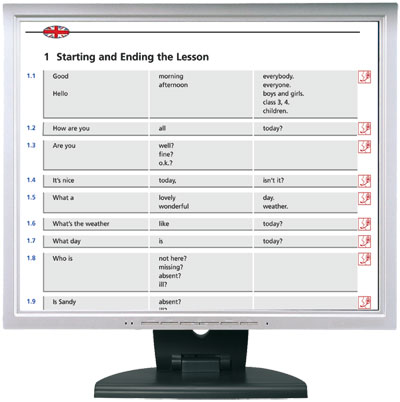 Für die Schulung und Verbesserung der Aussprache werden authentische Anweisungen und typisches Klassenraumvokabular vorgesprochen. Ein Klick auf einen Satz oder ein Wort – und schon erlernt man die korrekte Aussprache.