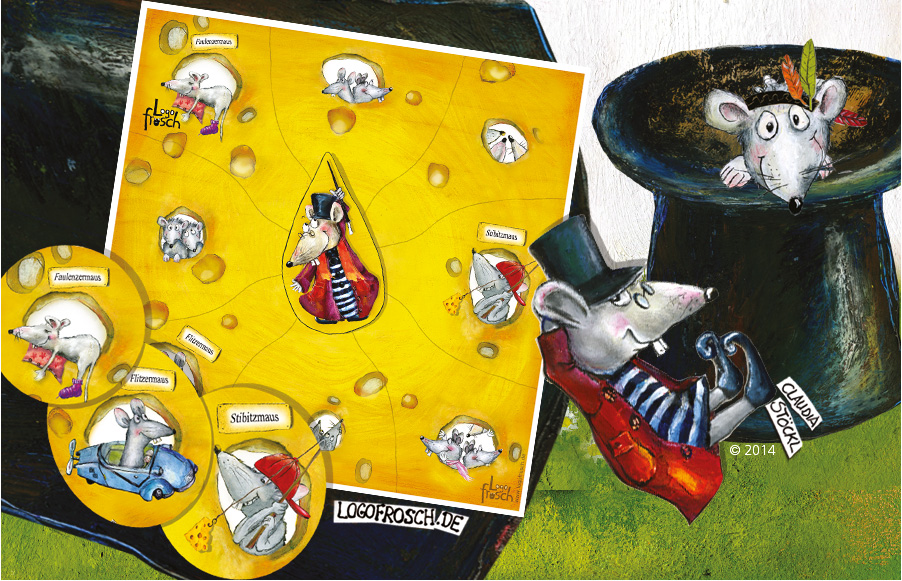 ”Zacharias Zaubermaus, was kommt aus dem Zylinder raus?” rufen alle Spitzmäuse laut. Die Mäusekarten (oder eigene Karten) werden um die Drehfigur gelegt und Zacharias Zaubermaus wird abwechselnd gedreht. “Zacharias zaubert ... ein Zelt.” (je nach Karte!) Aber aufgepasst! Bei der Faulenzermaus muss man eine Runde aussetzen, bei der Flitzermaus darf man noch einmal drehen und bei der Stibitzmaus eine Karte vom Nachbarn stibitzen.